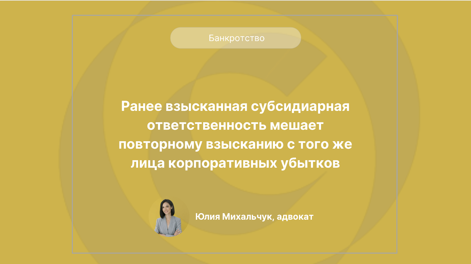 🖍 Из установленных судами обстоятельств настоящего дела следует, что Москвин О.А. уже был привлечен к субсидиарной ответственности по обязательствам должника в размере непогашенных требований кредиторов. Взыскание с него же дополнительного возмещения по второму требованию (в качестве компенсации иных корпоративных убытков) направлено на нивелирование потерь общества, которые, в конечном счете, должны были относиться на лиц, обладающих правом на получение ликвидационной квоты. Однако именно Москвин О.А. являлся таким лицом: он был фактическим руководителем и единственным бенефициаром (участником) общества. Следовательно, ввиду фактического совпадения кредитора и должника (статья 413 Гражданского кодекса Российской Федерации) отсутствовал субъект, чей правомерный интерес подлежал защите при разрешении второго требования, что является достаточным основанием для отказа в его удовлетворении;